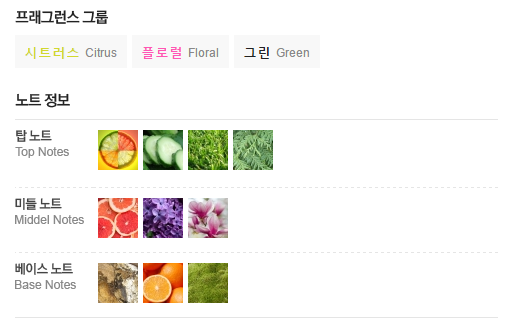 탑 노트 ㅣ 시트러스, 큐컴버, 그라스, 사이프러스, 귤